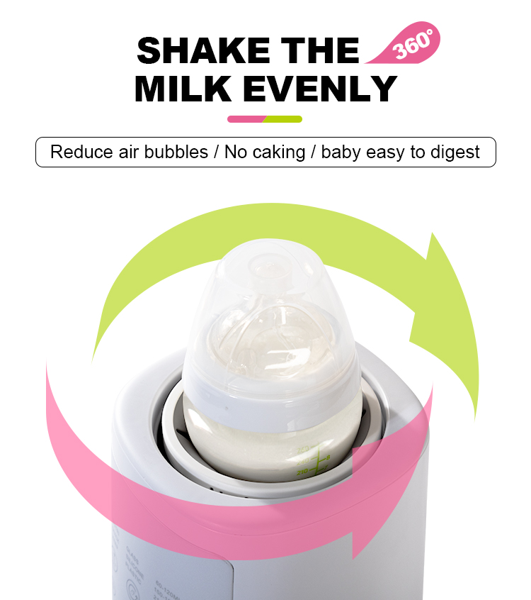 ●The bottle shaker is 360°forward and reverse rotation, shakes the milk powder evenly. Uniform speed operation effectively reduce the generation of bubbles. No caking, baby easy to digest.