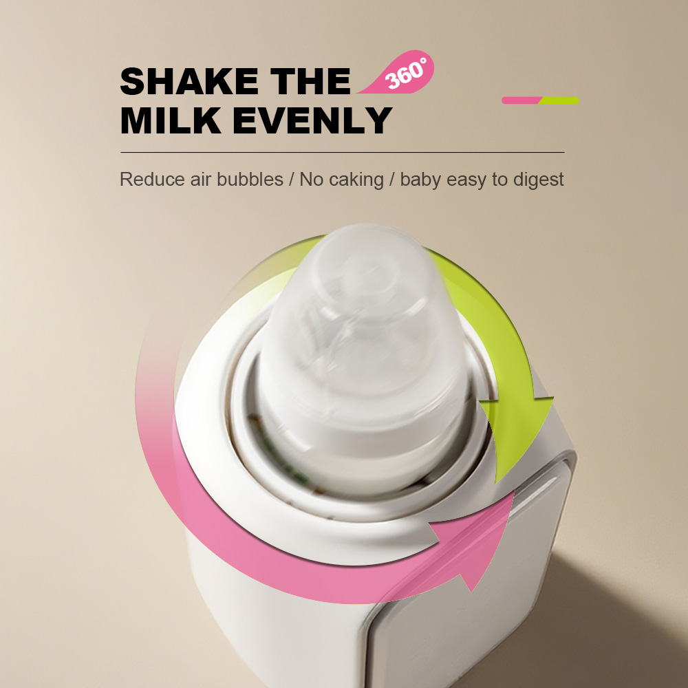 ●The bottle shaker is 360°forward and reverse rotation, shakes the milk powder evenly. Uniform speed operation effectively reduce the generation of bubbles. No caking, baby easy to digest.