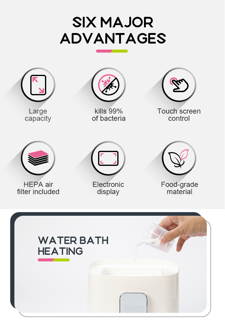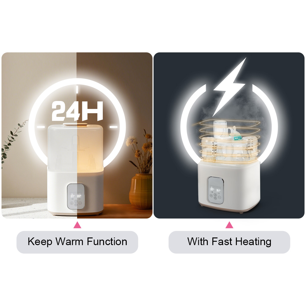 ●4-in-1: sterilizes,drys, heats milk up, keeps warm