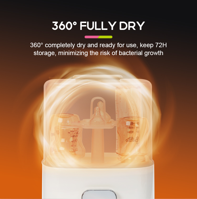 ●Large capacity with removable basket perfectly positions all 4 bottles for thorough sterilization and dry